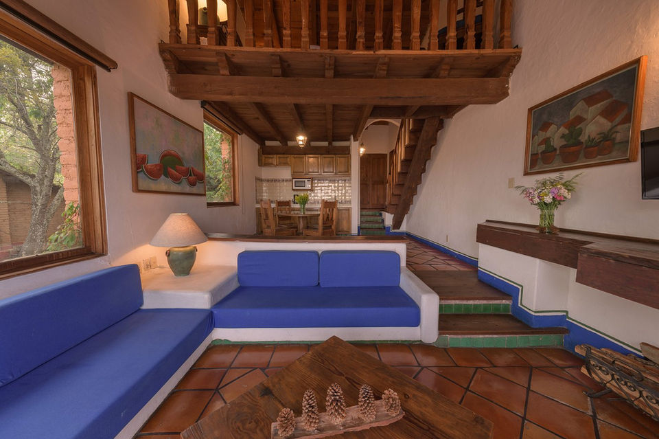 Terraza: Con vistas espectaculares al campo de golf, la presa del Nogal y los paisajes de Tapalpa.